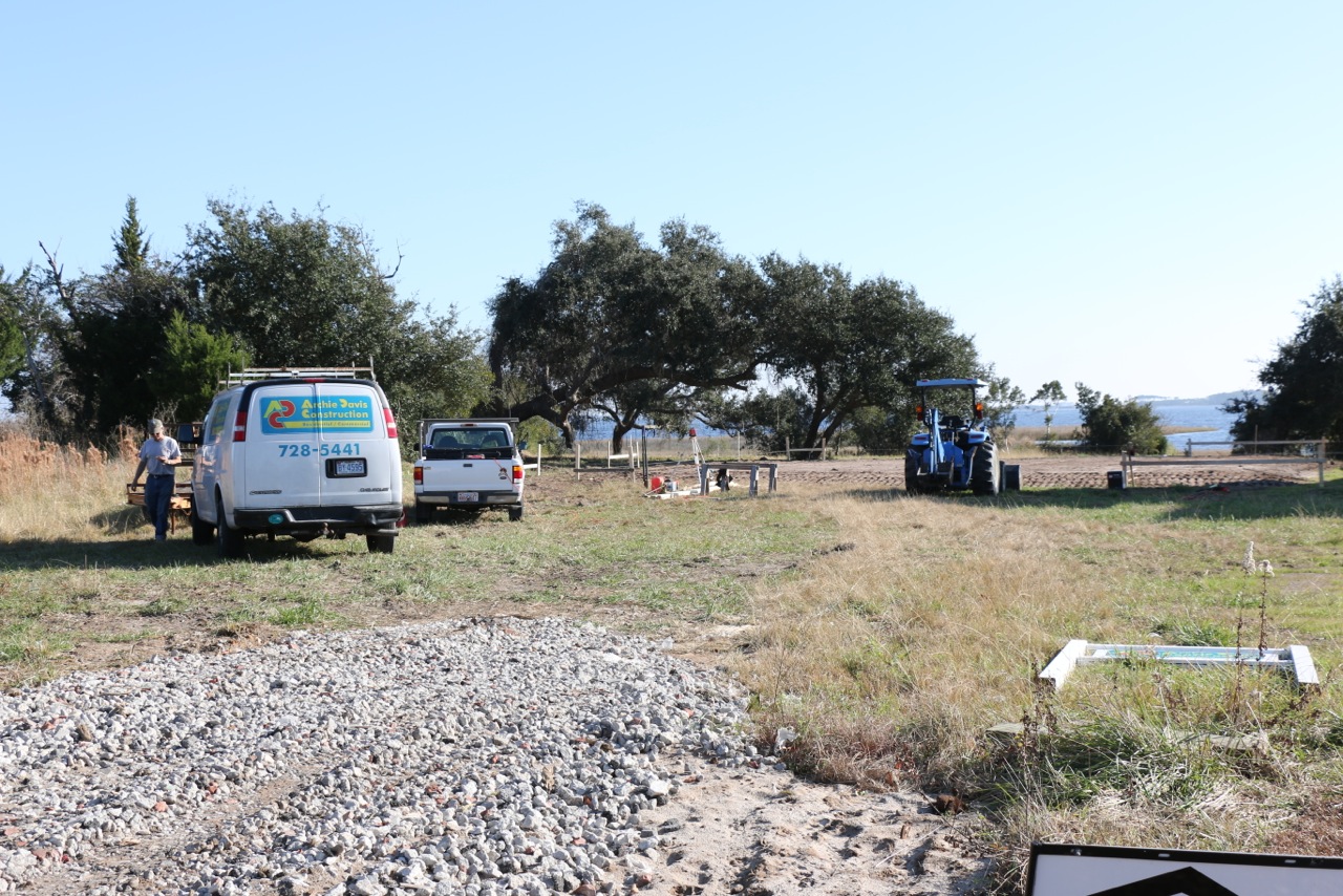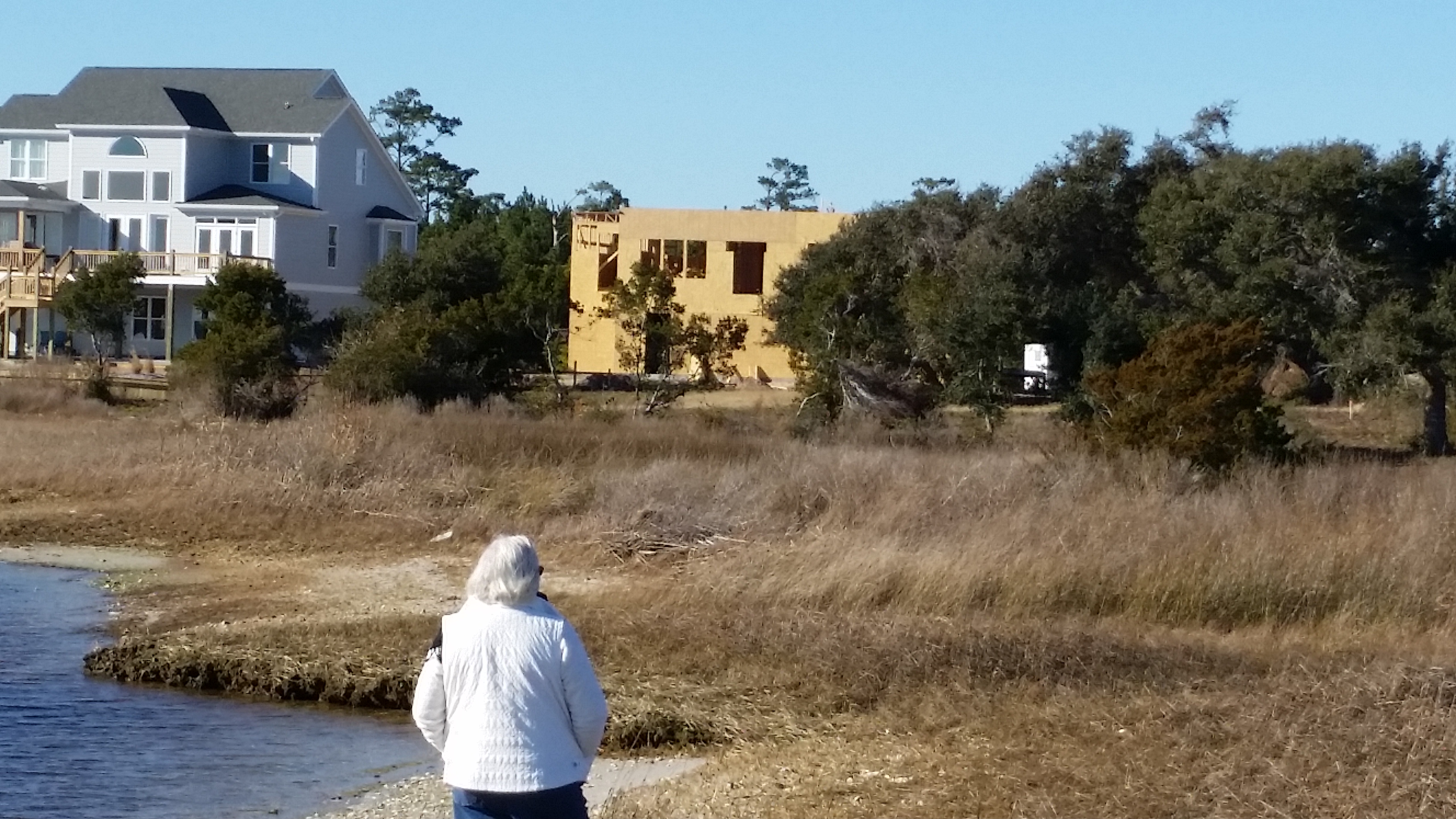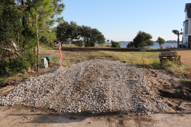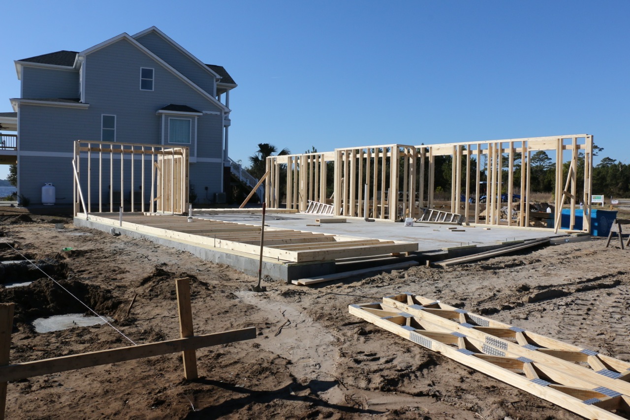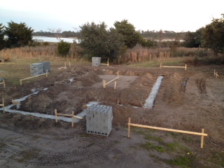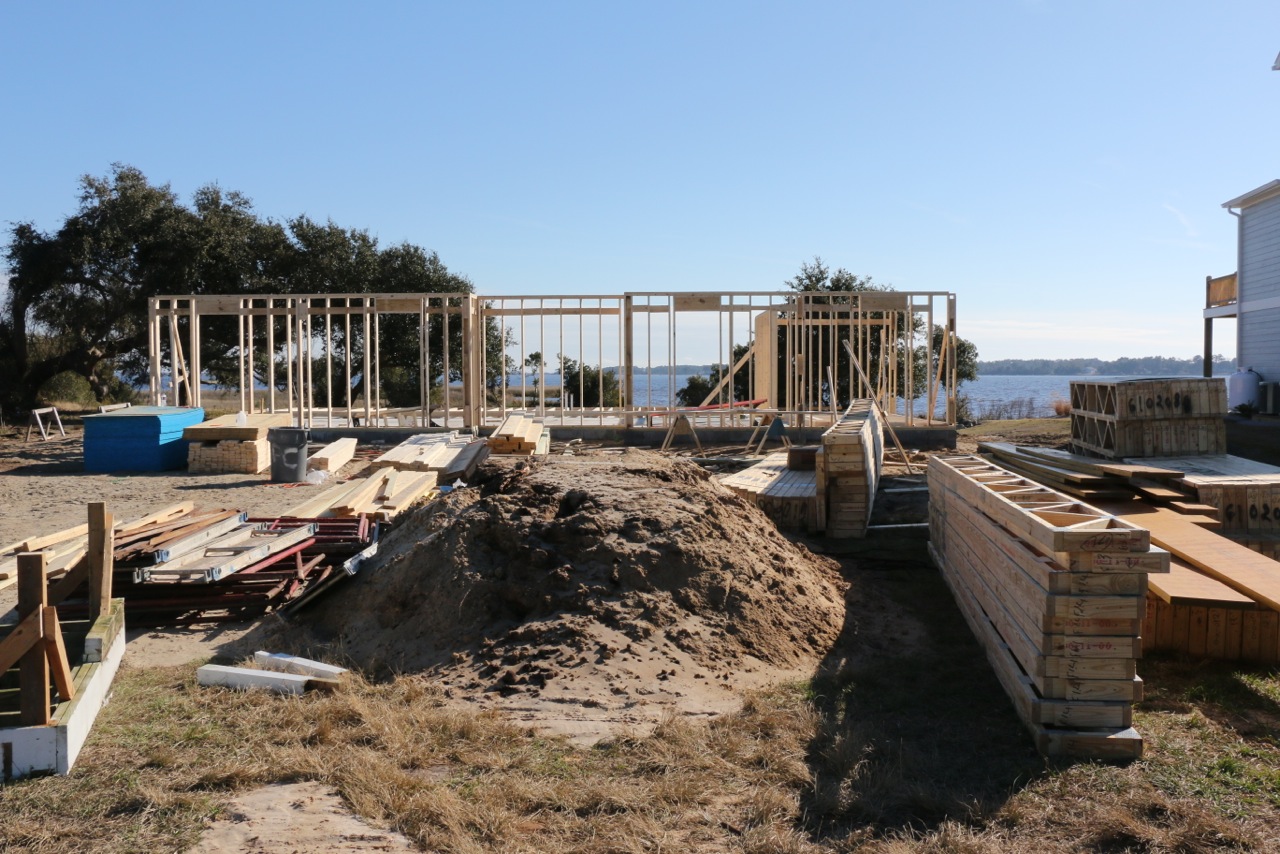 Again, clicking on the thumbnails to the left will open a new browser tab with the (generally larger) original image If the new tab is blank, please try reloading that tab. The sunset photo is simply spectacular. Thanks again to Neal Stetson for taking the time to record our progress. As always, Archie Davis not only manages the construction circus and keeps things moving along rapidly, but also takes great photos. Since we have now relocated to a cottage in nearby Beaufort, NC we're now tracking construction progress with smart phone photos.