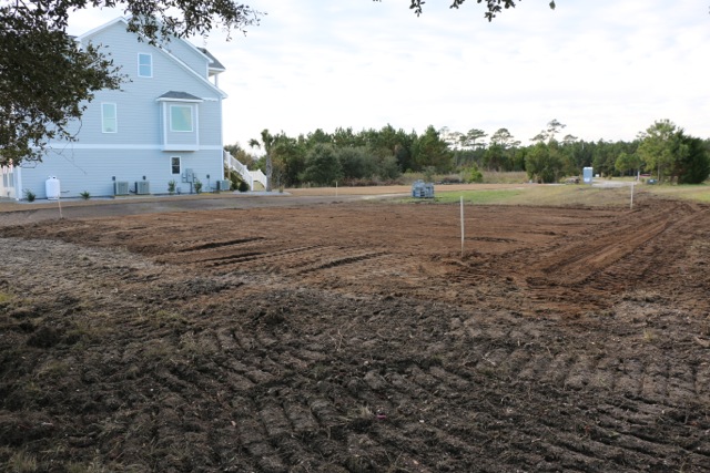 On the larger versions of the photos (clicking on the images displays a new tab with a larger image), tall wooden stakes marking the footprint of the house are clearly visible. The live oaks really are a stunning feature of the lot which hopefully we have integrated in to the design and siteing of the house.