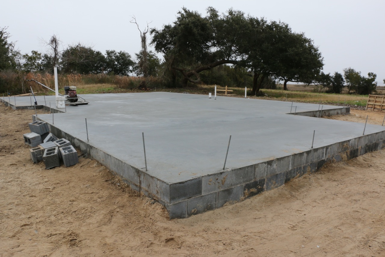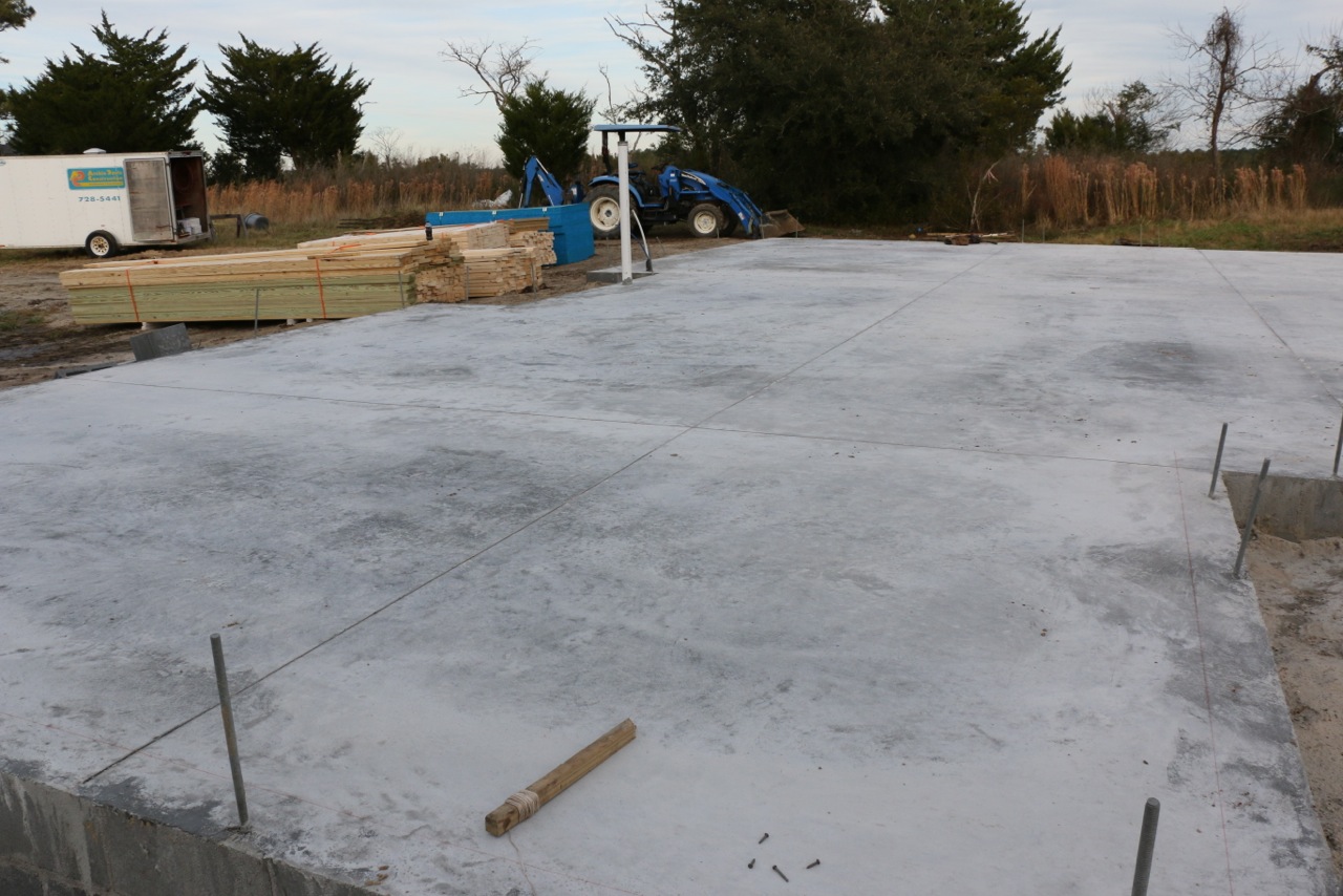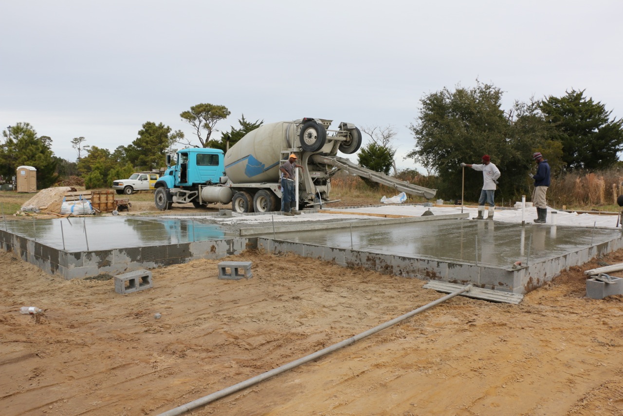 With everything ready to pour the concrete slab on Friday, 2 Jan 2015, we received an email confirmation from the building inspector just after 10:00 that everything was OK. With two truck loads of concrete, the pour went as planned and they were finished by about 13:00. Photos courtesy of Archie Davis and neighbor, Neal Stetson.