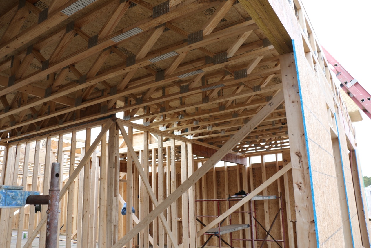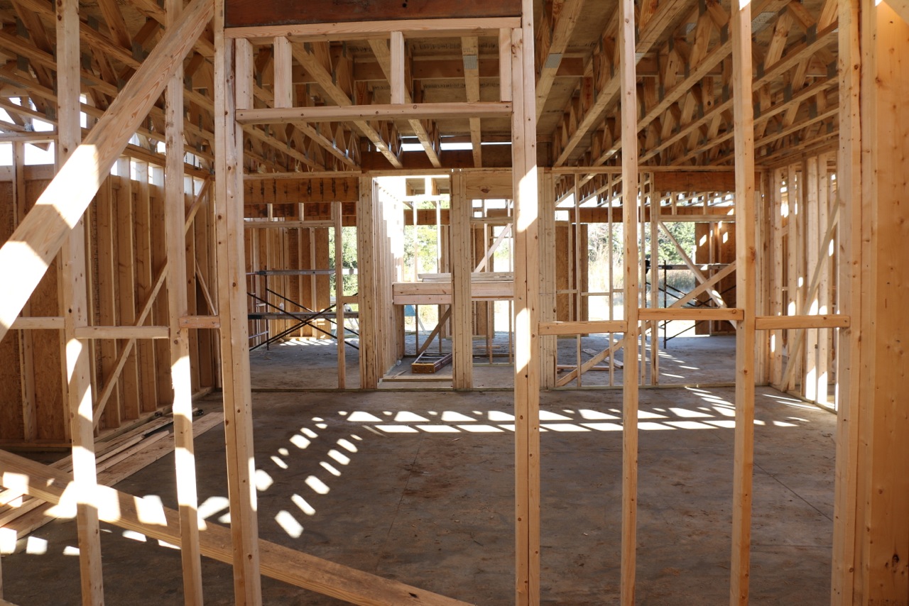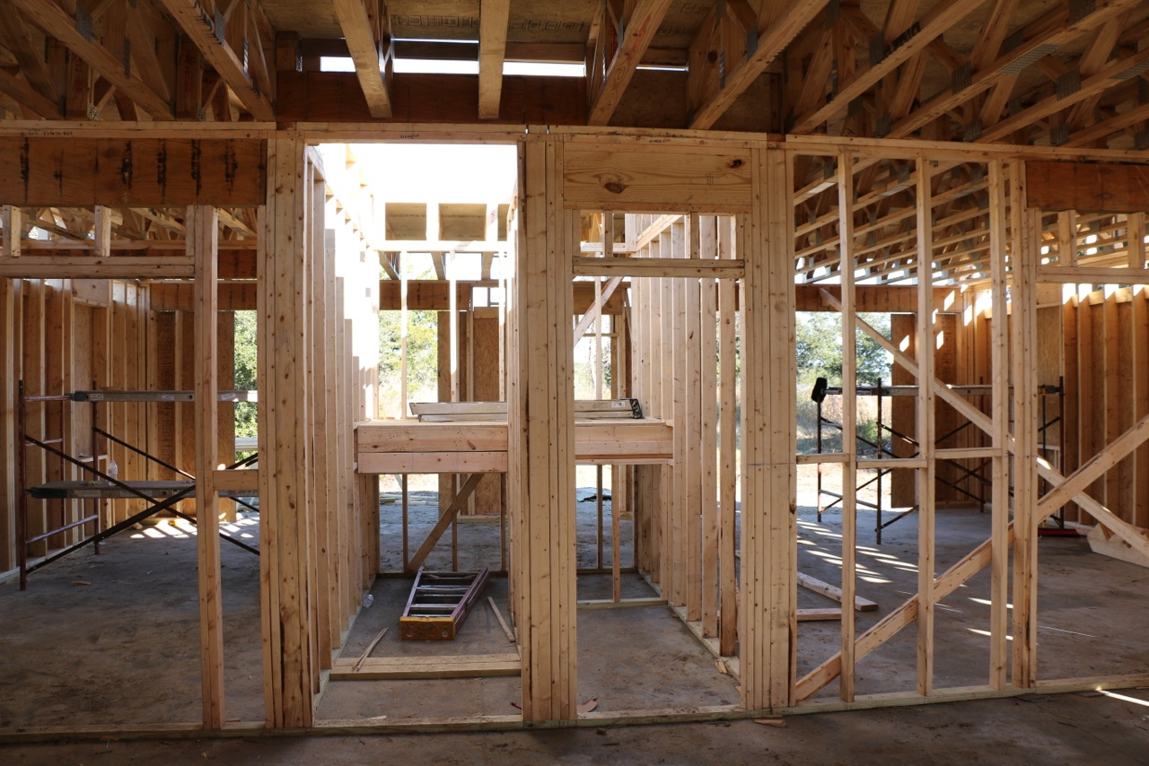 By Friday afternoon, 9 Jan, the framing crew made great progress with most of the ground floor walls constructed and half raised into place.
