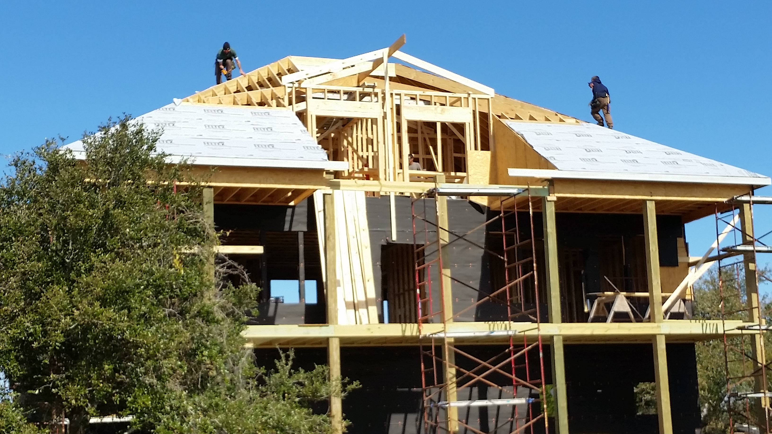 The main back porch begins to take shape with kneewalls visible on 3rd FL