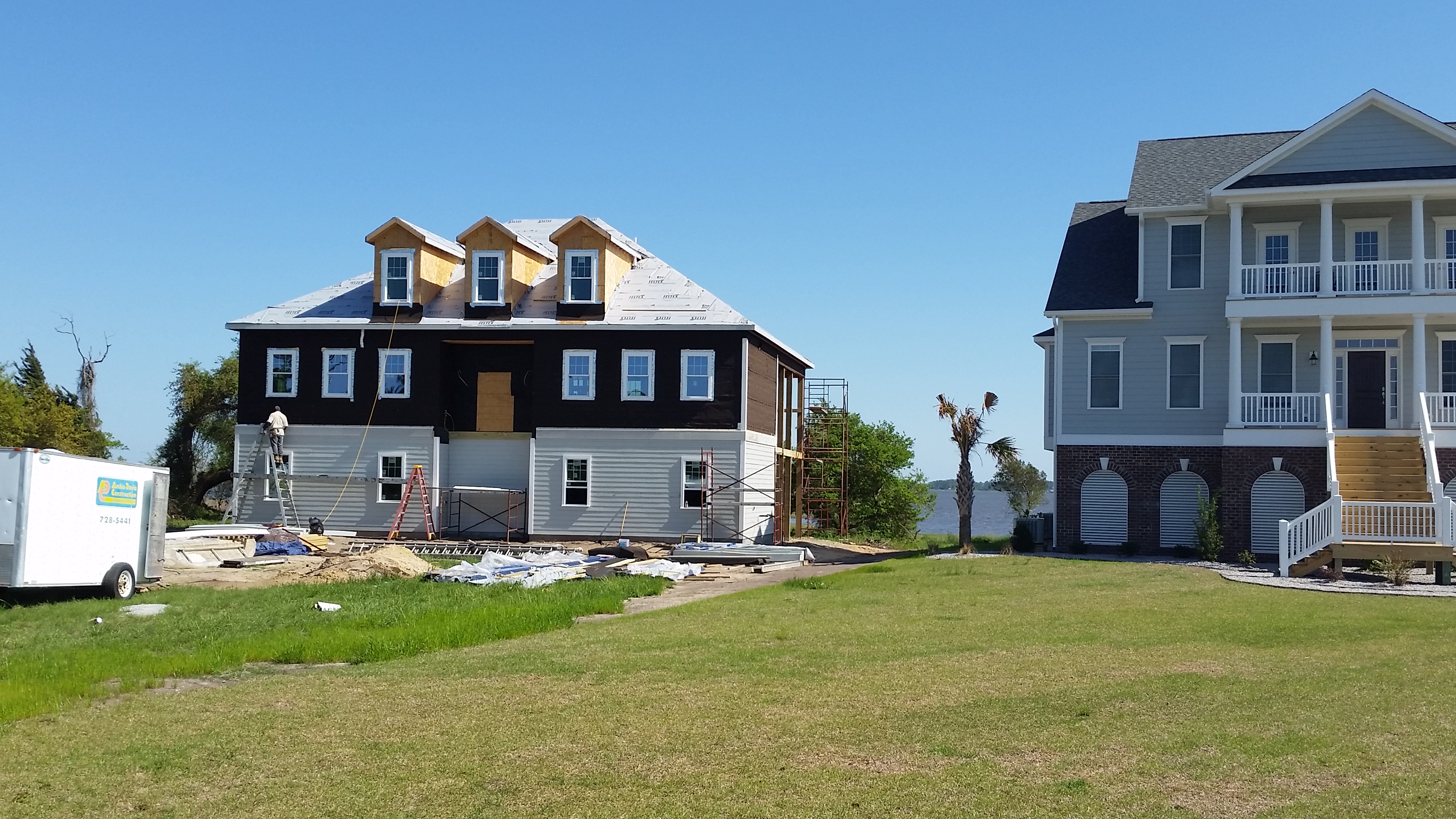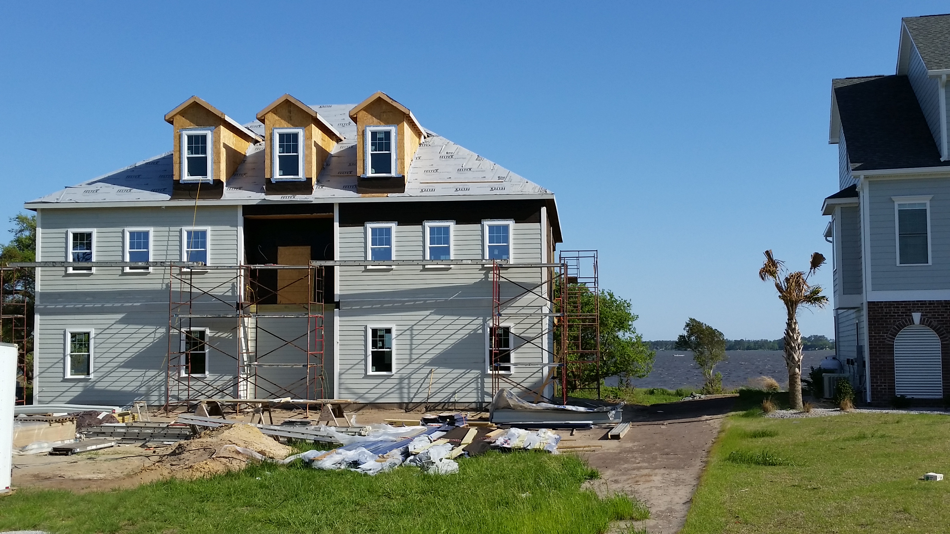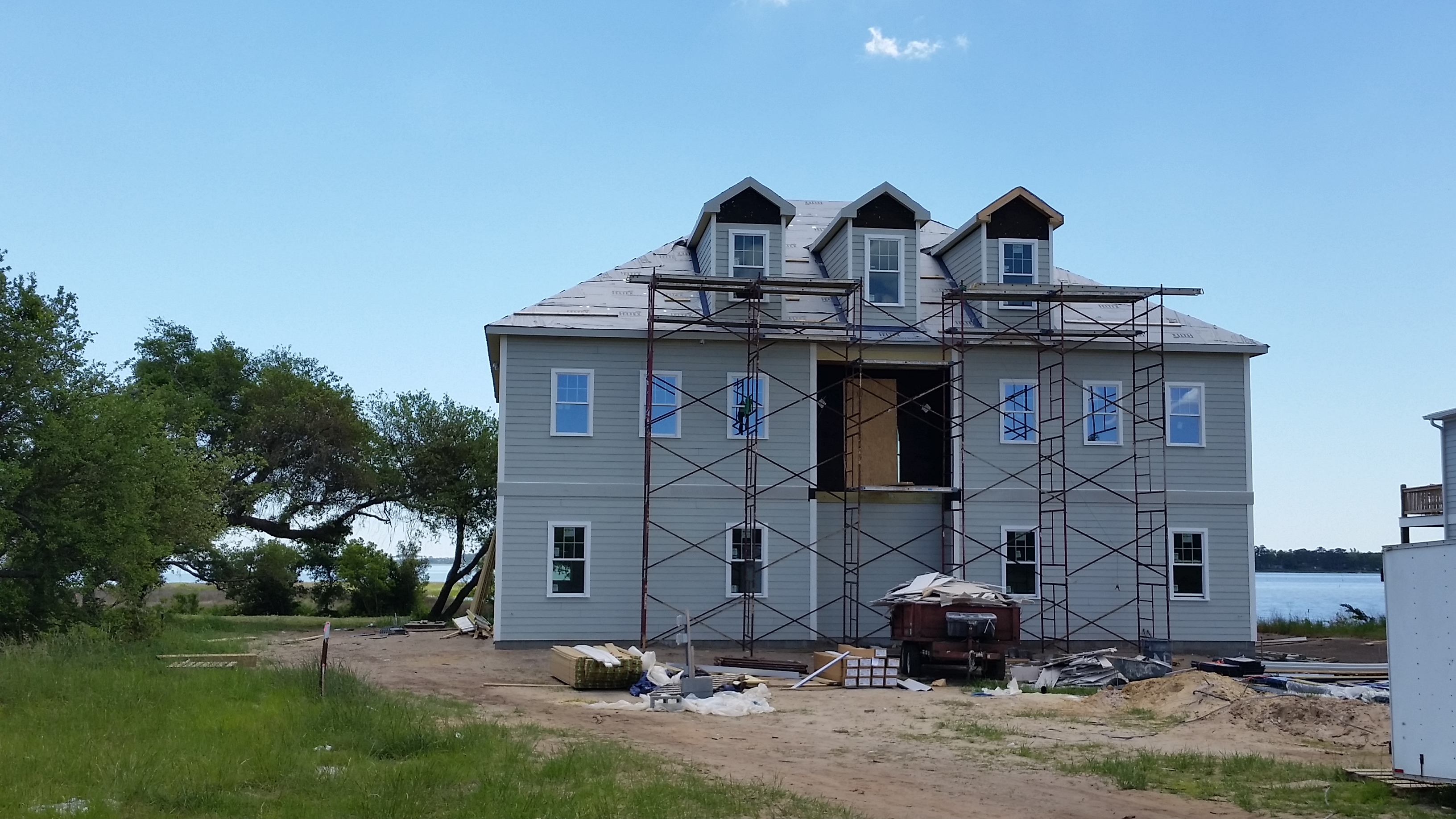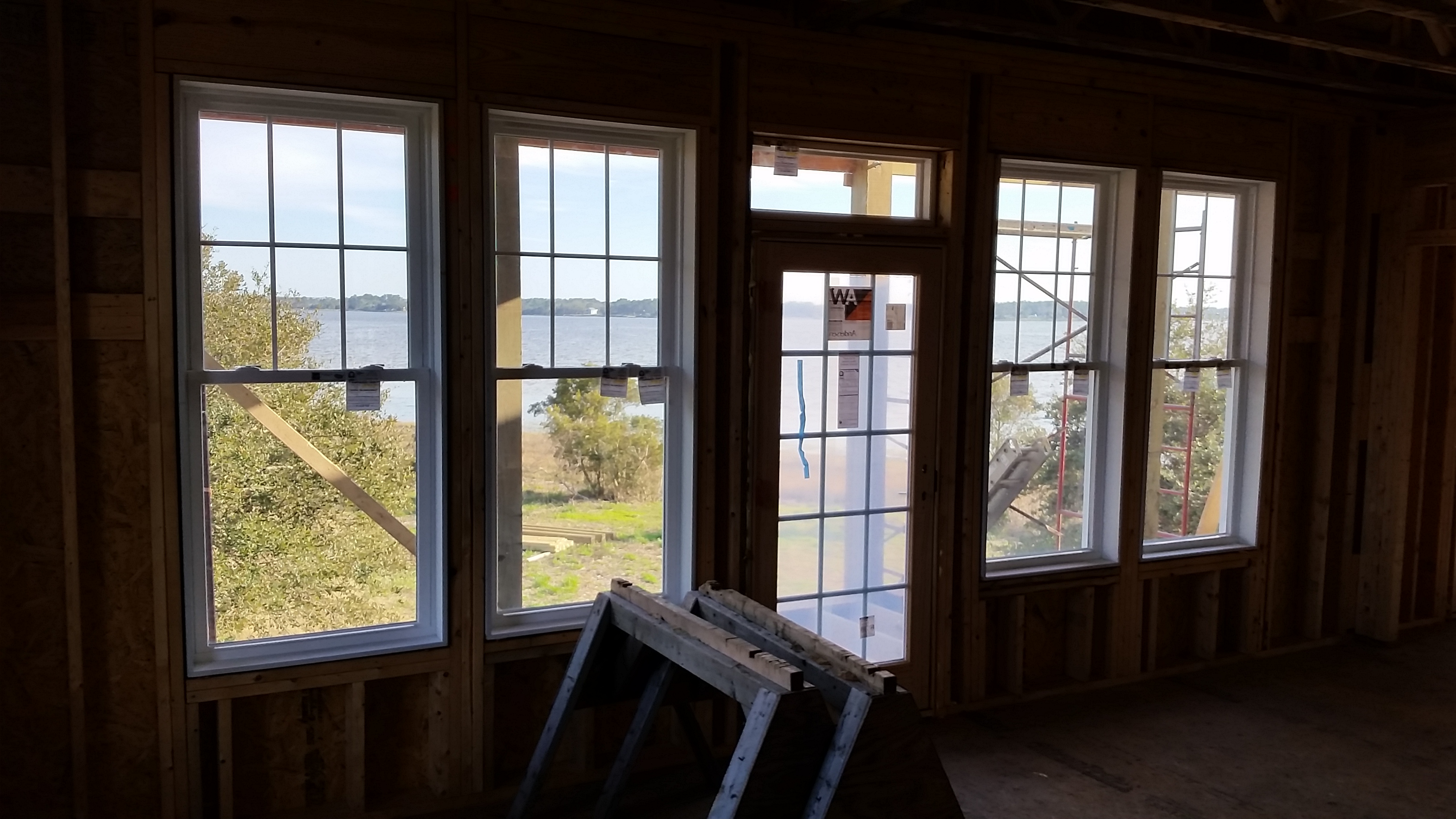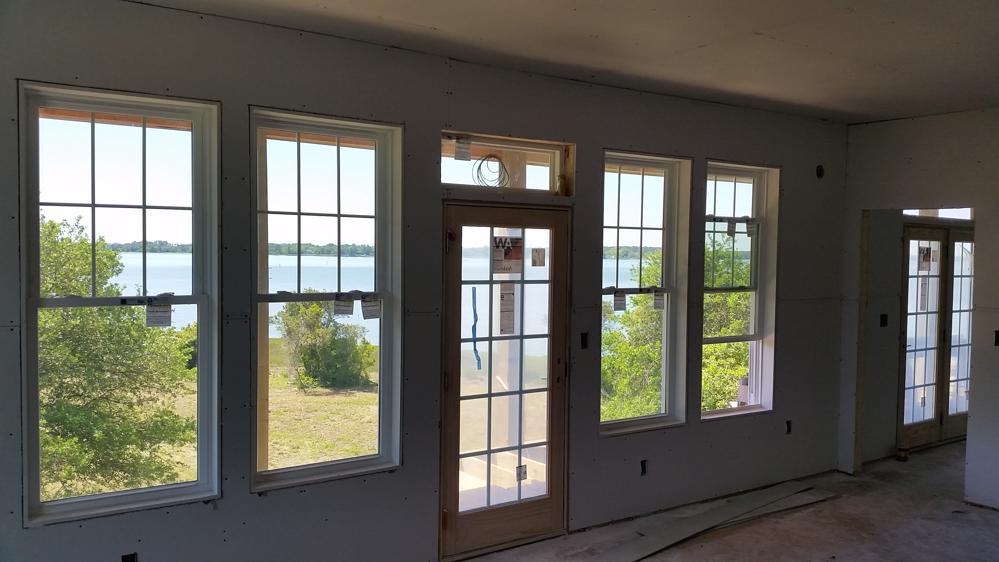Next week looks very busy and weather forecasts look good for the next few weeks. We expect to meet with Kemp Guthrie, the cabinet maker, to lay out the cabinets as well as the pool supplier to fine tune the pool location, permitting and electrical connections. We're still waiting for another bid on a dock and boat lift. Last week with almost gale winds, we had a great opportunity to test the windows and doors; perfect! No whistling or air leaks! There are a few windows requiring sash changes - a couple with no grills and some with tempered glass. One dormer window and the french door on the ground floor have not yet arrived.