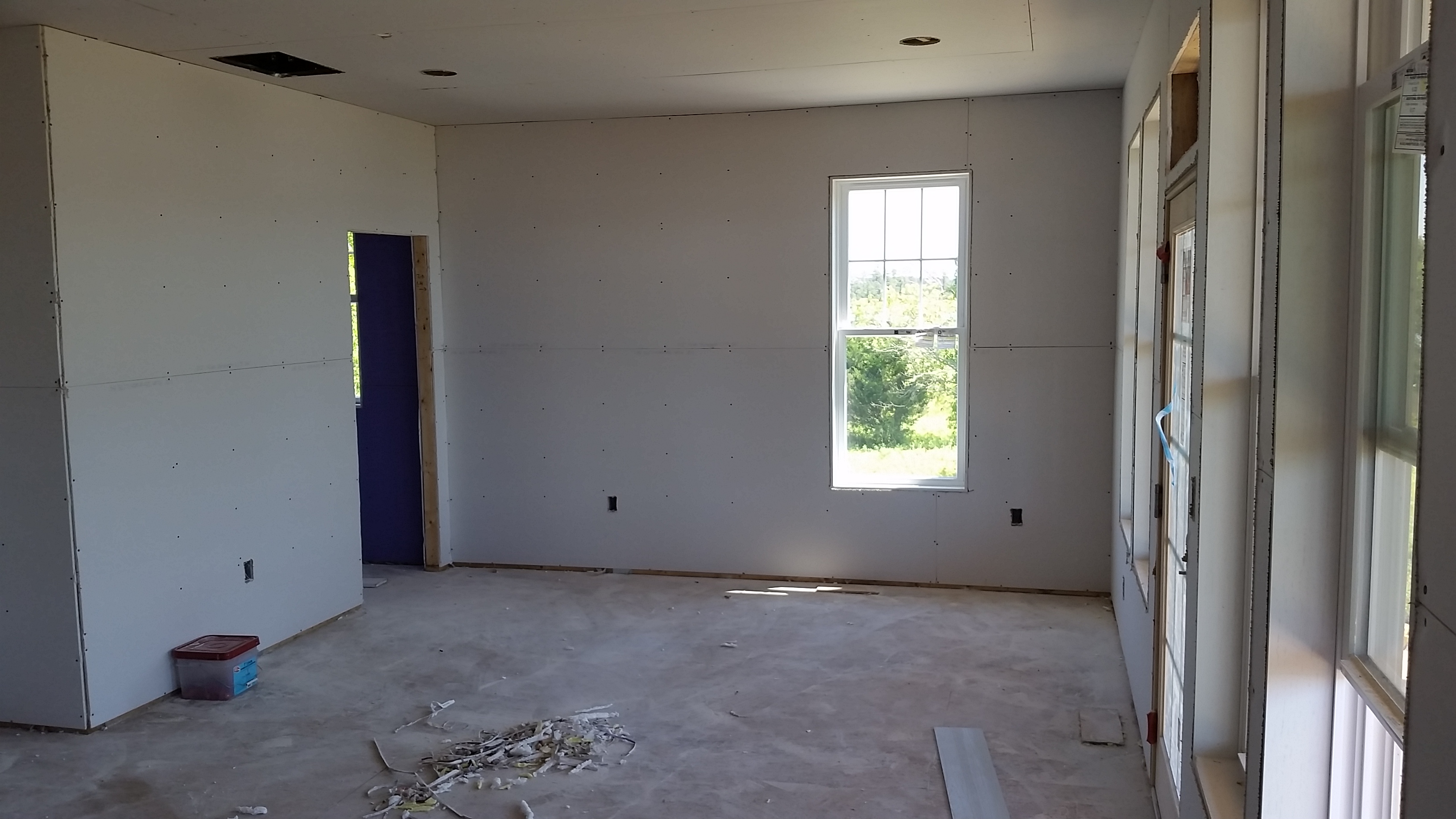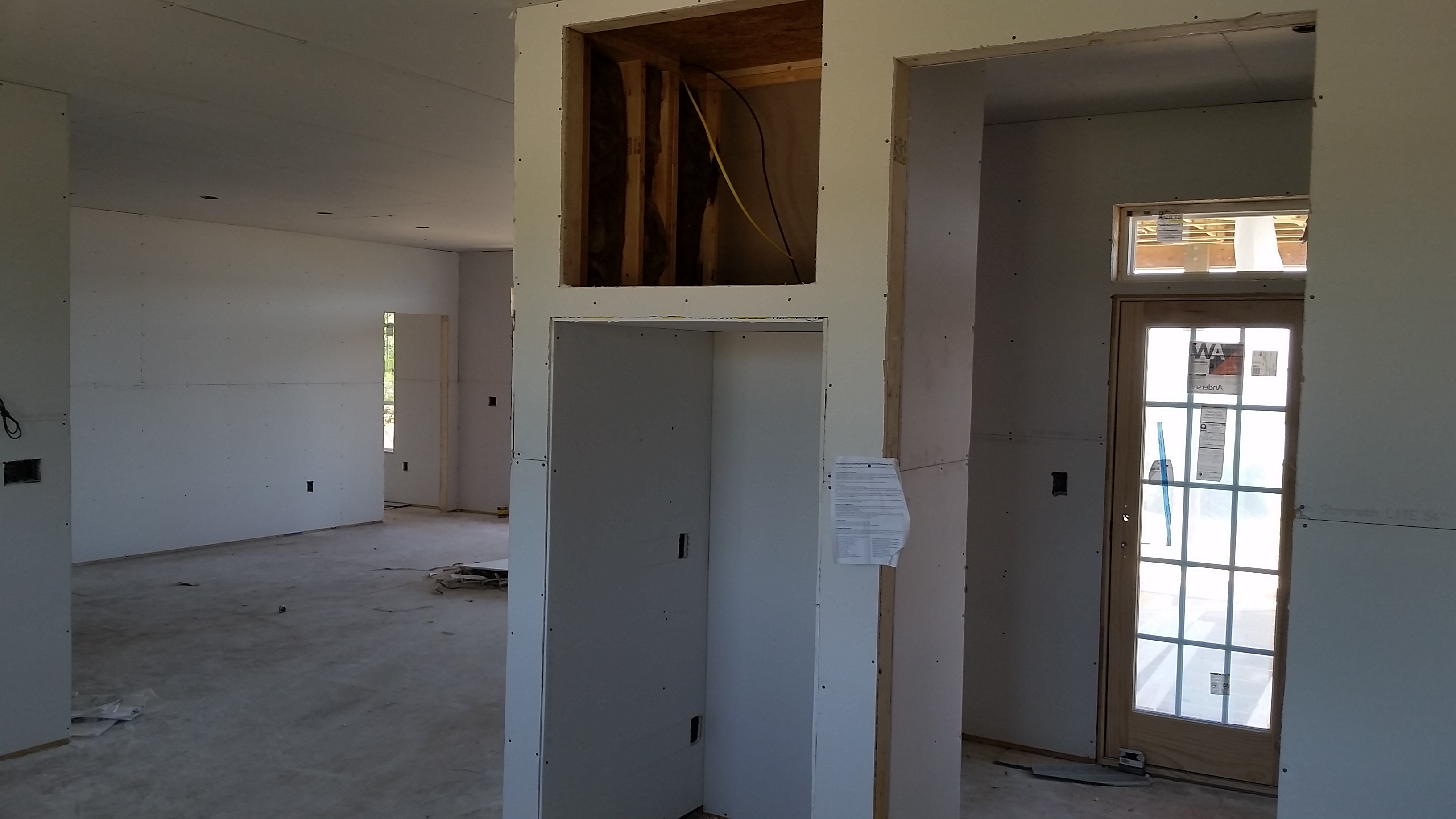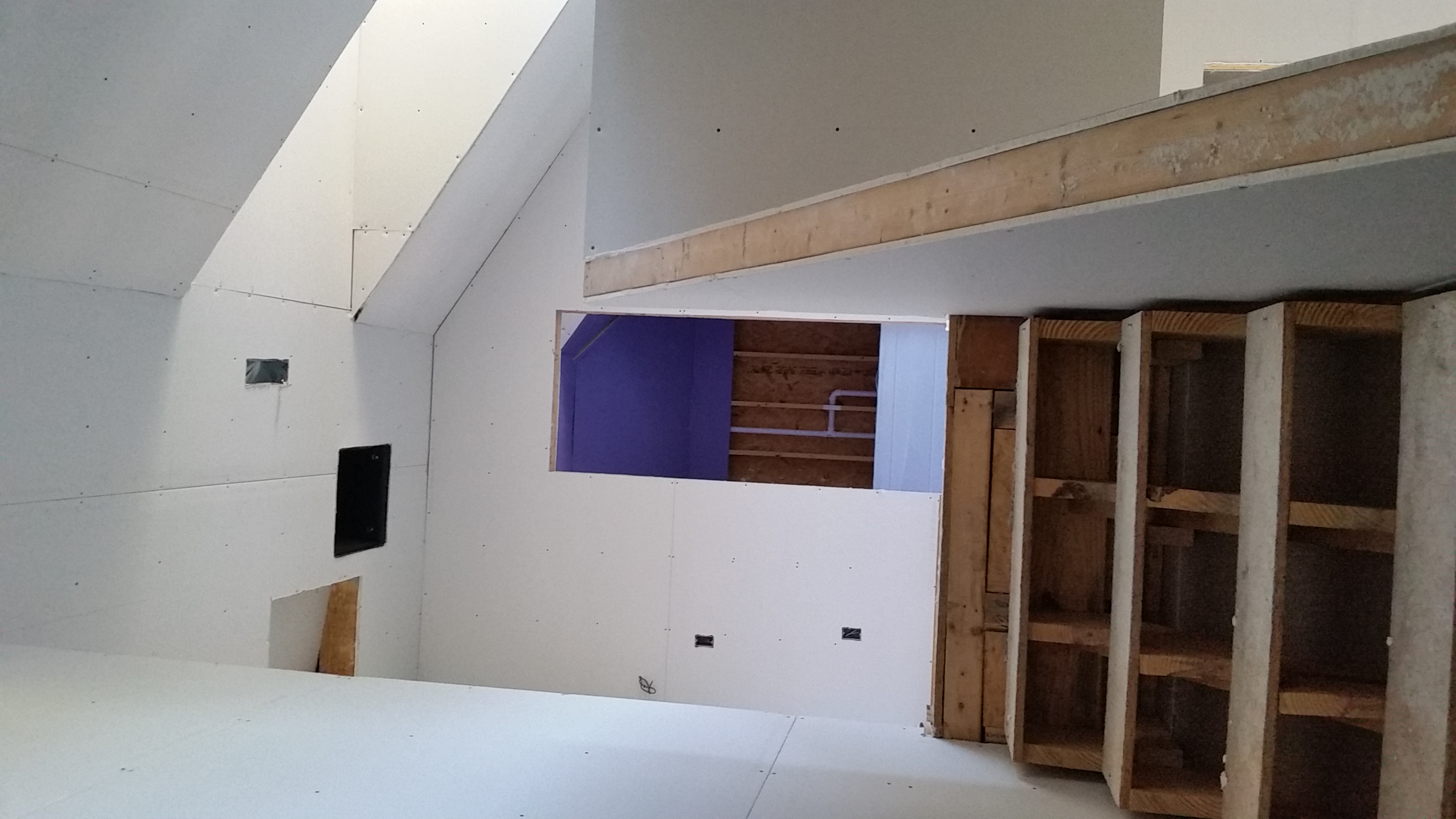 Working over the weekend, by early-May, the drywall crew had hung most of the drywall. Quite a change!