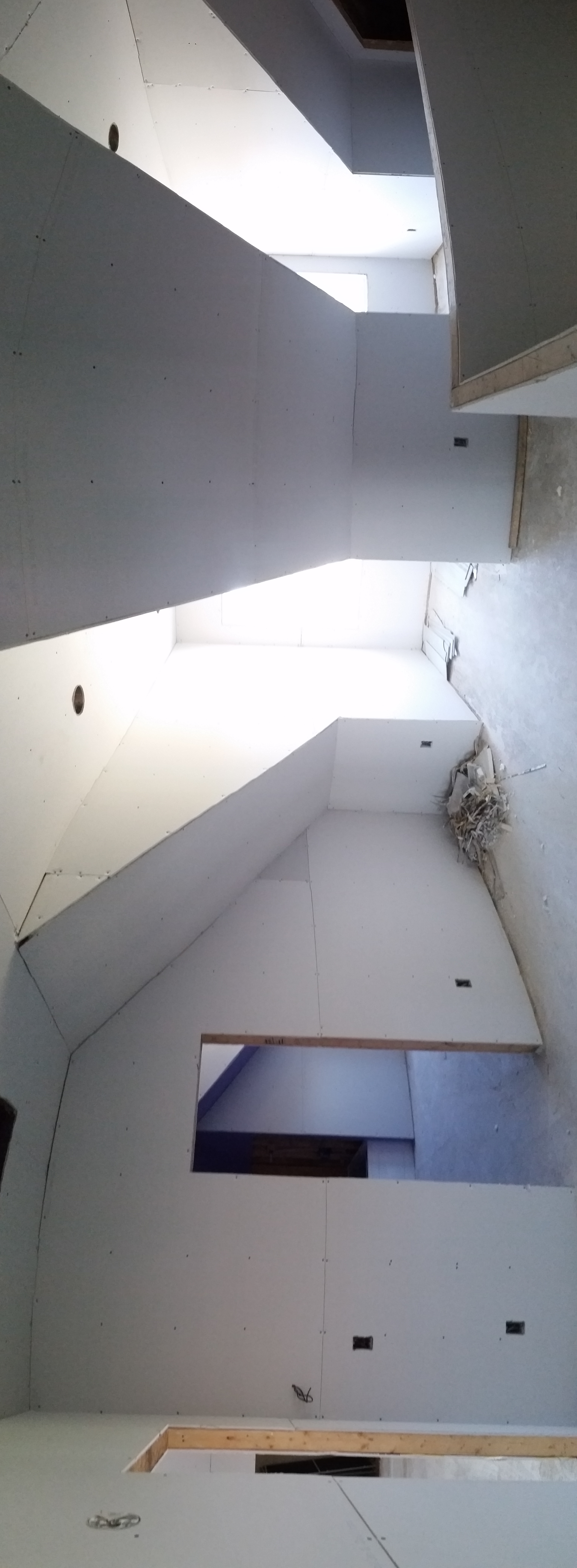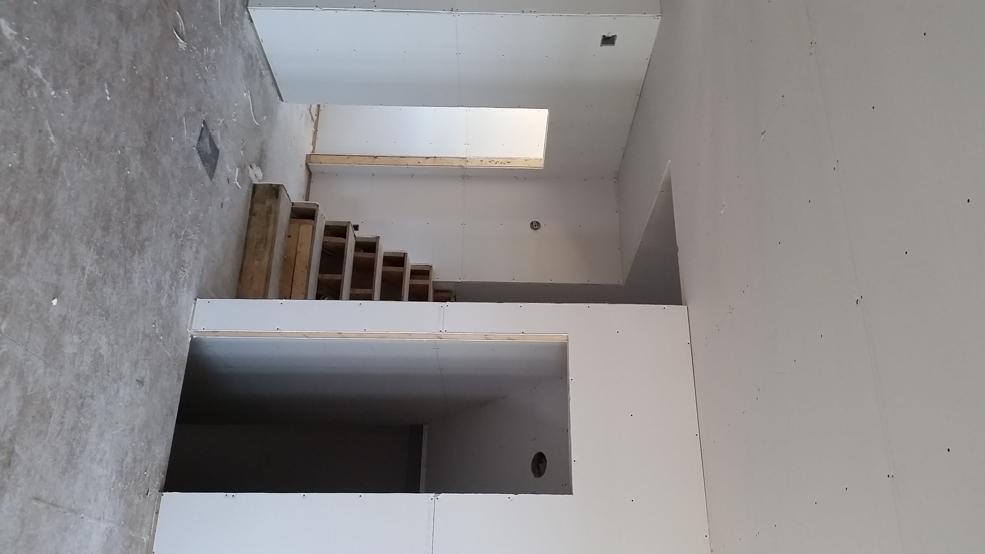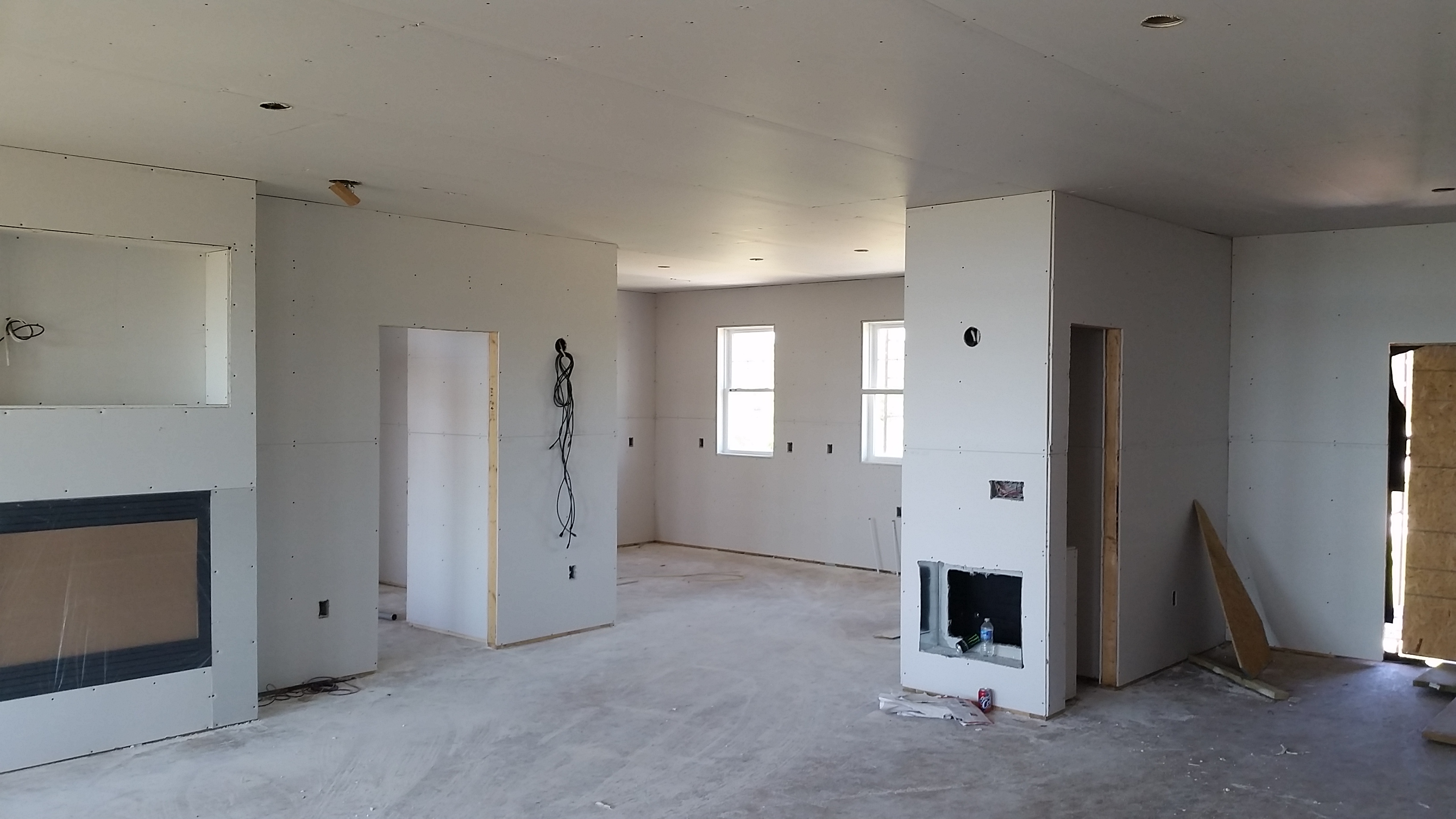 Working over the weekend, by early-May, the drywall crew had hung most of the drywall. Quite a change!
