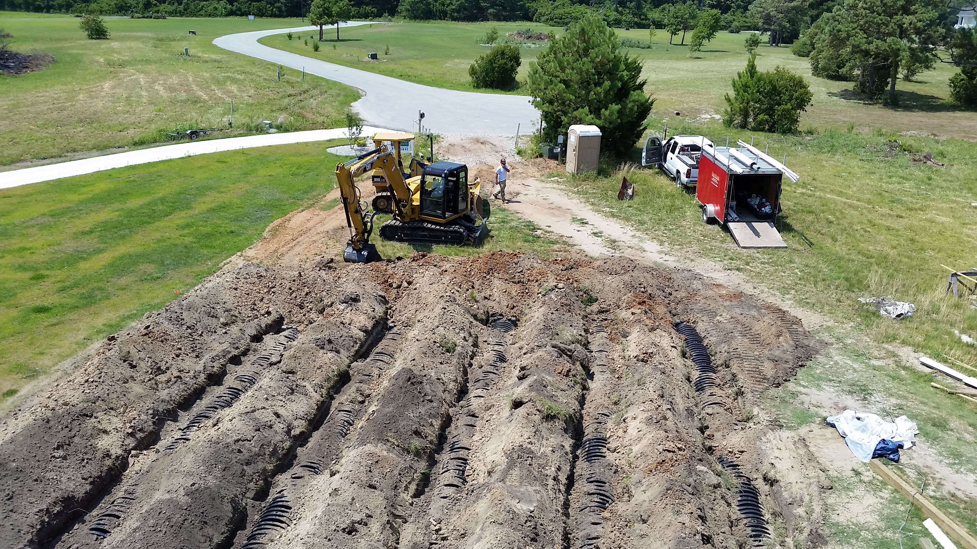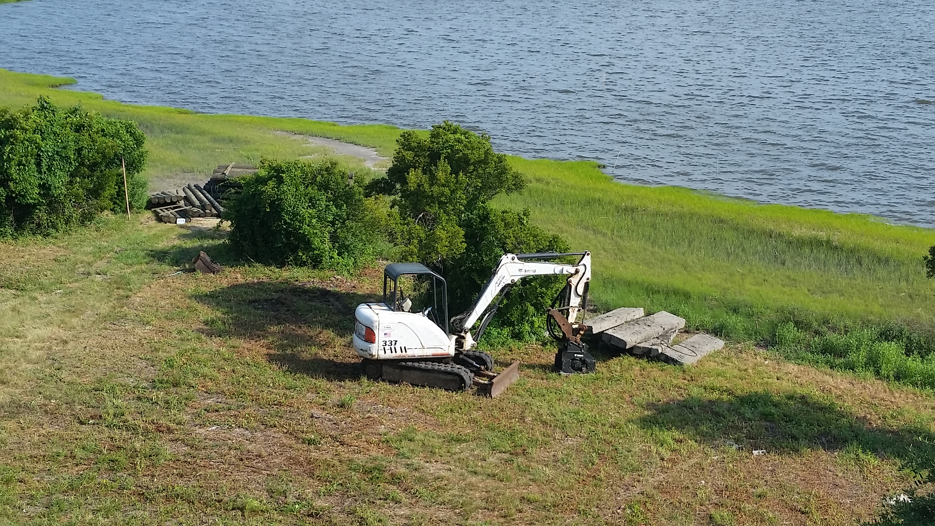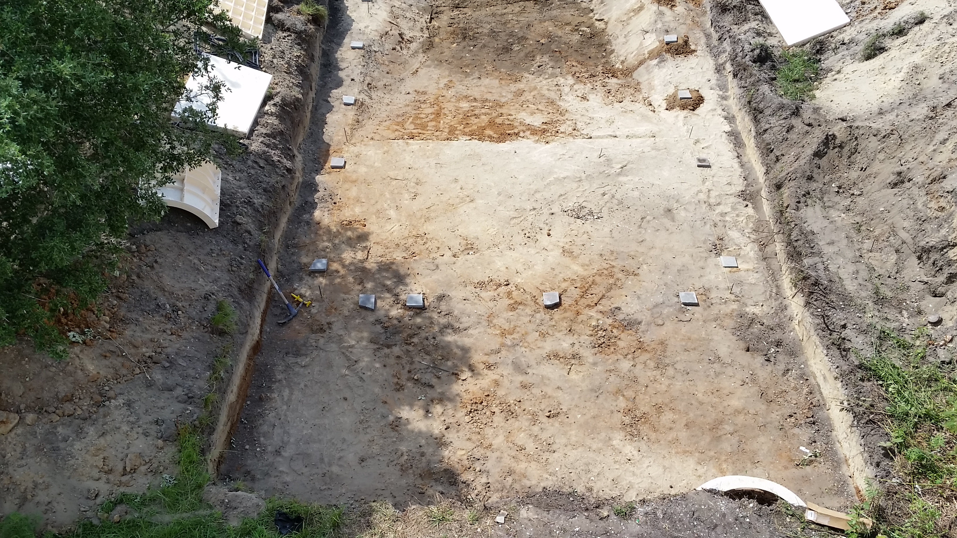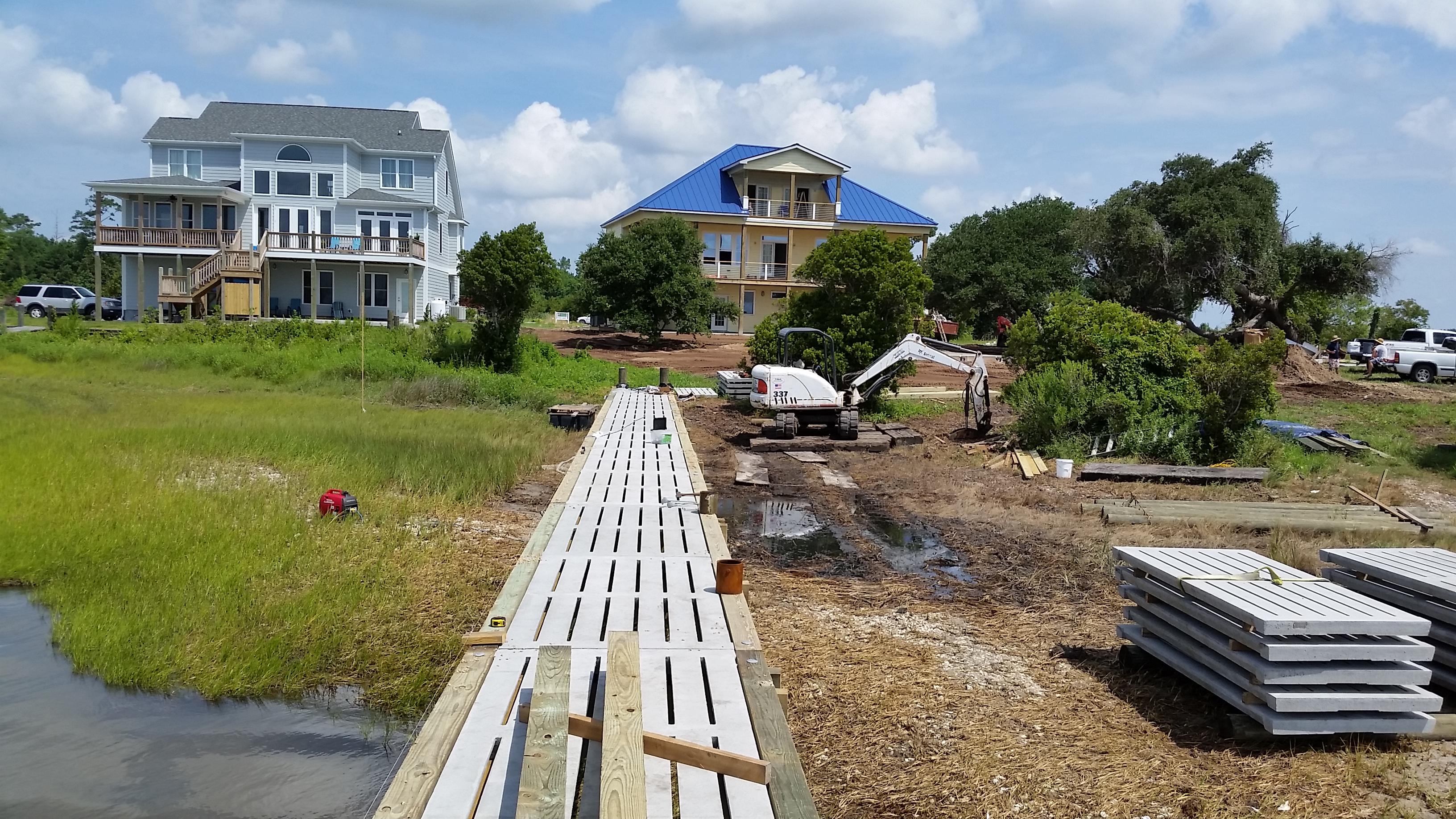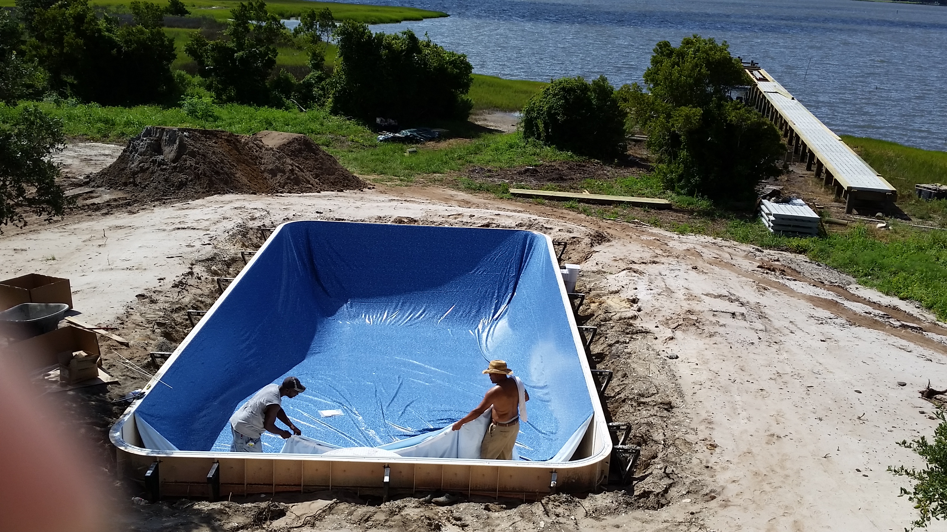 The end of June and the start of July was busy. We received permits for the pool and the dock, and installed the underground electric, communications and septic system. Dean Barnes, the marine contractor, of Mud Bucket Dredging has staged dock materials and a small excavator on site and will be starting after the Independence Day holiday. Havelock Pool and Spa also is scheduled to begin after the holiday.