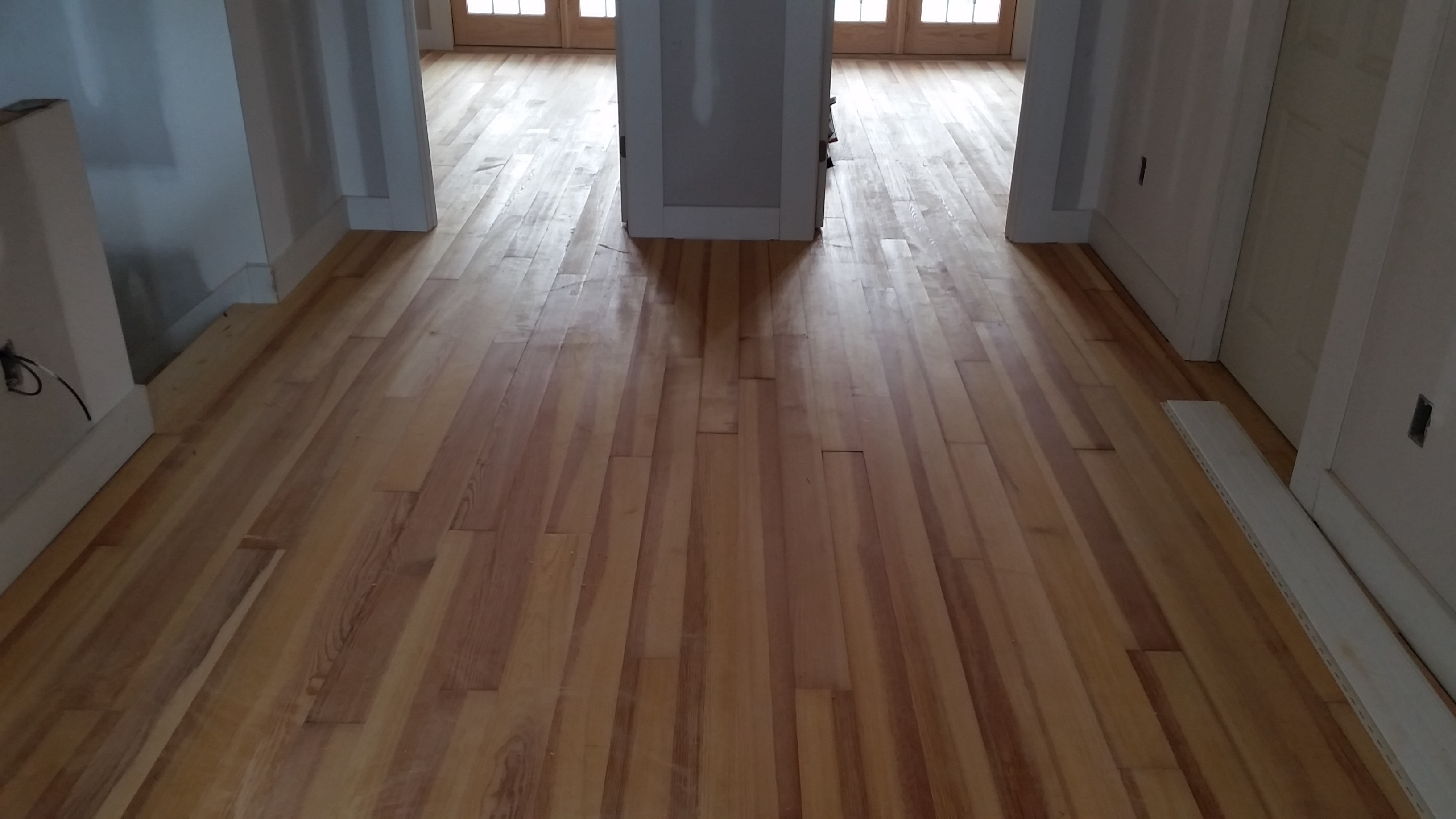 Dennis Willis and his crew finished the flooring and it is beautiful. Archie Davis will be redeploying some of his crew to finish the porch and stair railings, complete some siding and install interior stair treads. Except for shoe molding, almost all of the interior trim is installed and ready for the painting crew scheduled to begin interior painting after the holiday. This month's schedule also includes rain gutters and downspouts, concrete for driveway, parking pad in front of garages and under the rear porch, installation of electrical and plumbing fixtures, the HVAC equipment, front door and the cabinetry and countertops.
