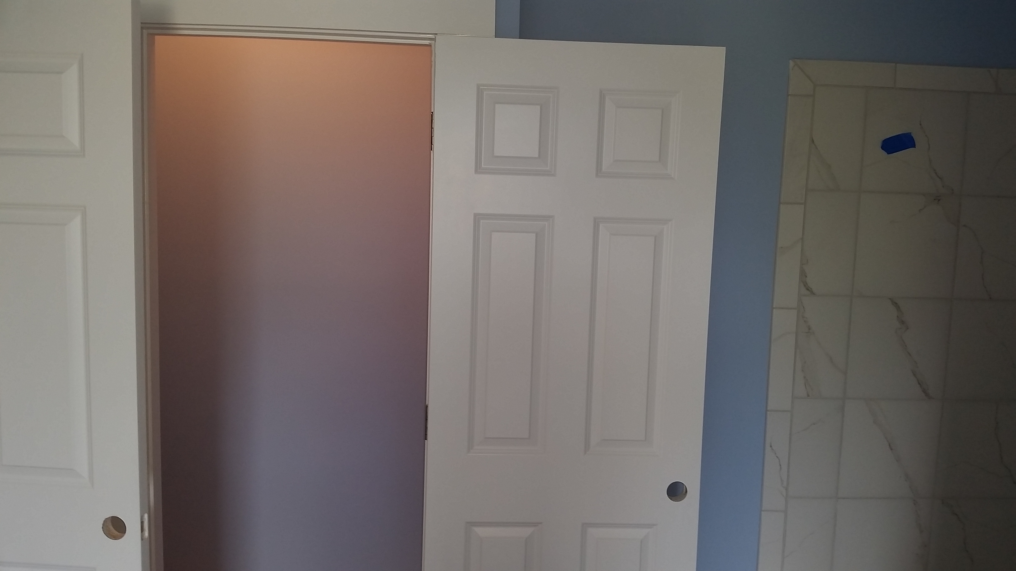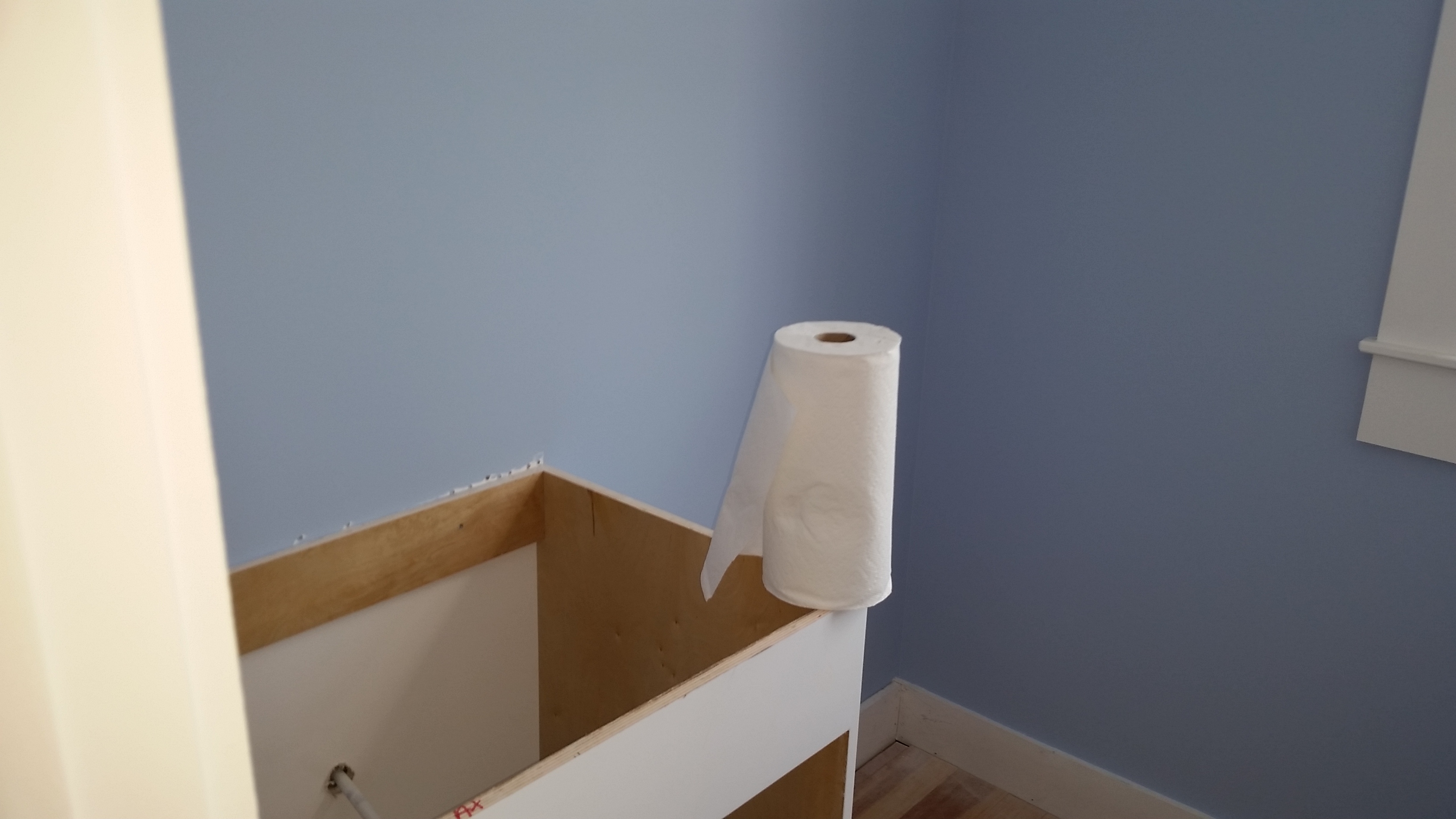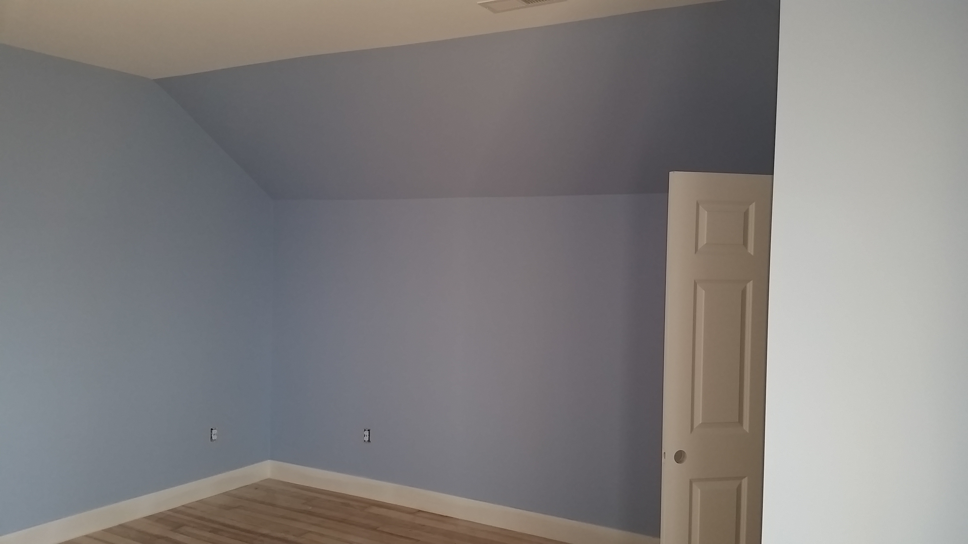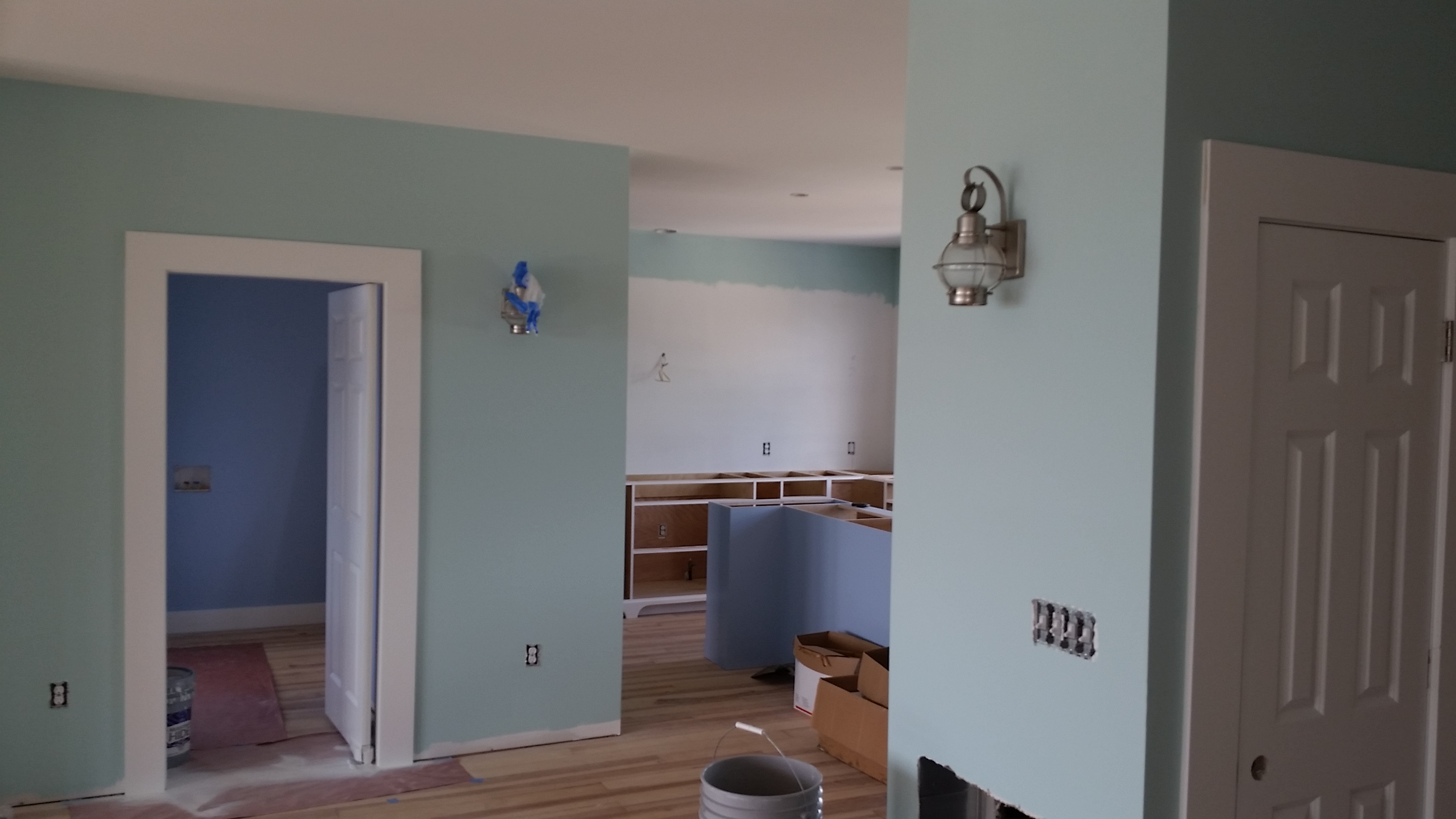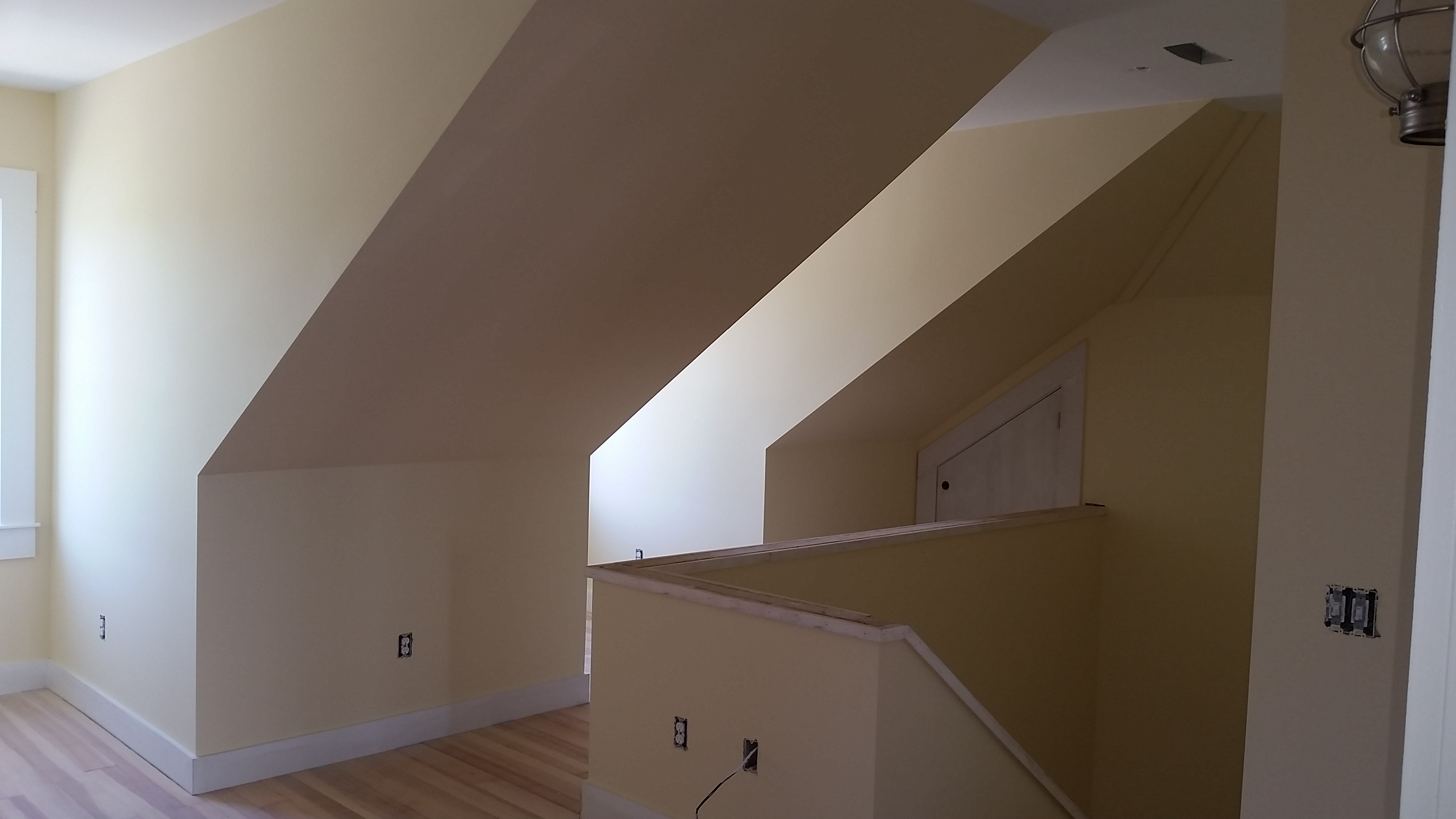 We made a couple of changes, mid-course - we thought the slanting part of the ceilings above the kneewalls on the third floor should generally be painted the color of the walls. The guest bath looked pretty blue and we left that as originally specified in order to better balance the colored walls with the white ceiling. We are very pleased with how the colors look on the walls.