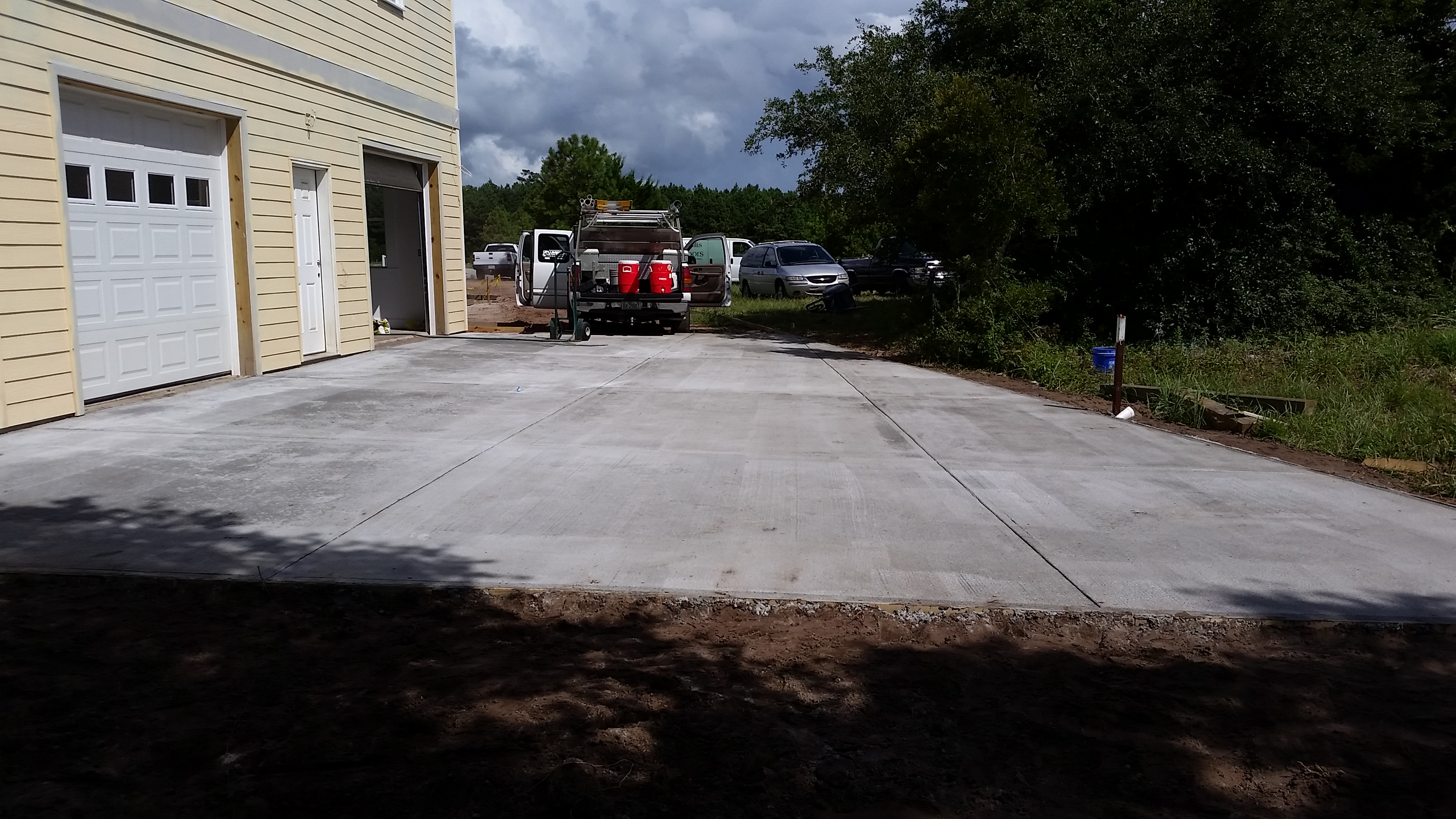 By 30 July, Tyrone Davis and his crew had completed the concrete pad outside the garages and were preparing to work on the driveway and front walk. Interior painting is complete and Dennis Willis and his crew are sanding floors in preparation for three coats of varnish.